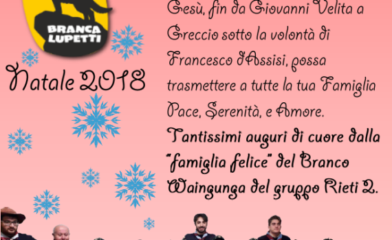 Con l’augurio che la Sacra Famiglia rappresentata nel Presepio con la nascita del bambino Gesù, fin da Giovanni Velita a Greccio sotto la volontà di Francesco d’Assisi, possa trasmettere a tutte le vostre Famiglie Pace, Serenità, e Amore. Tantissimi auguri di cuore dalla “famiglia felice” del Branco Waingunga del gruppo […]