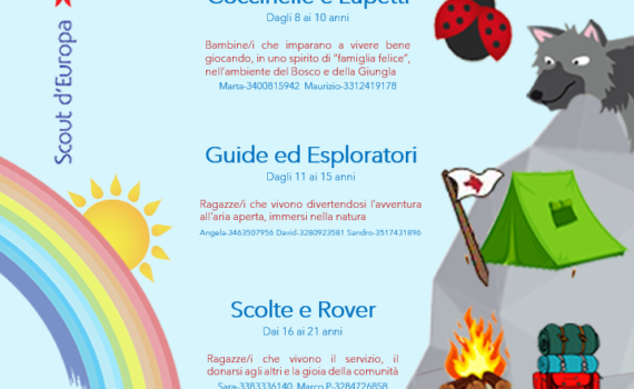 Gioco, avventura, divertimento, vita all’aria aperta e molto altro! Le coccinelle e i lupetti (dagli 8 agli 11 anni) non vedono l’ora di accogliere nuove/i bambine/i. Le guide e gli esploratori (dagli 11 ai 15 anni) non vedono l’ora di accogliere nuove/i ragazze/i. Iscrizioni aperte. Per qualsiasi info potete: – […]