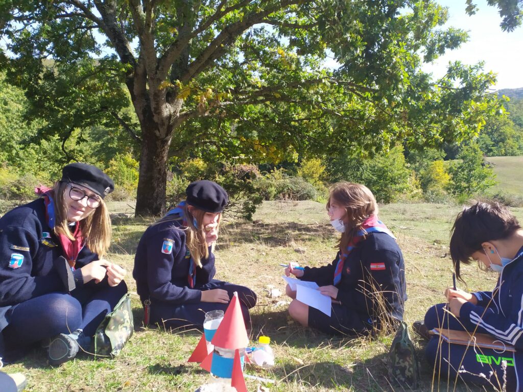 Noi scolte semplici abbiamo incontrato l’astronauta che ci ha chiesto di costruire un razzo. Con la guida di Sara e Simona ci siamo recate in una radura poco distante dove abbiamo realizzato un razzo utilizzando una bottiglia, un apposito kit e la nostra creatività.