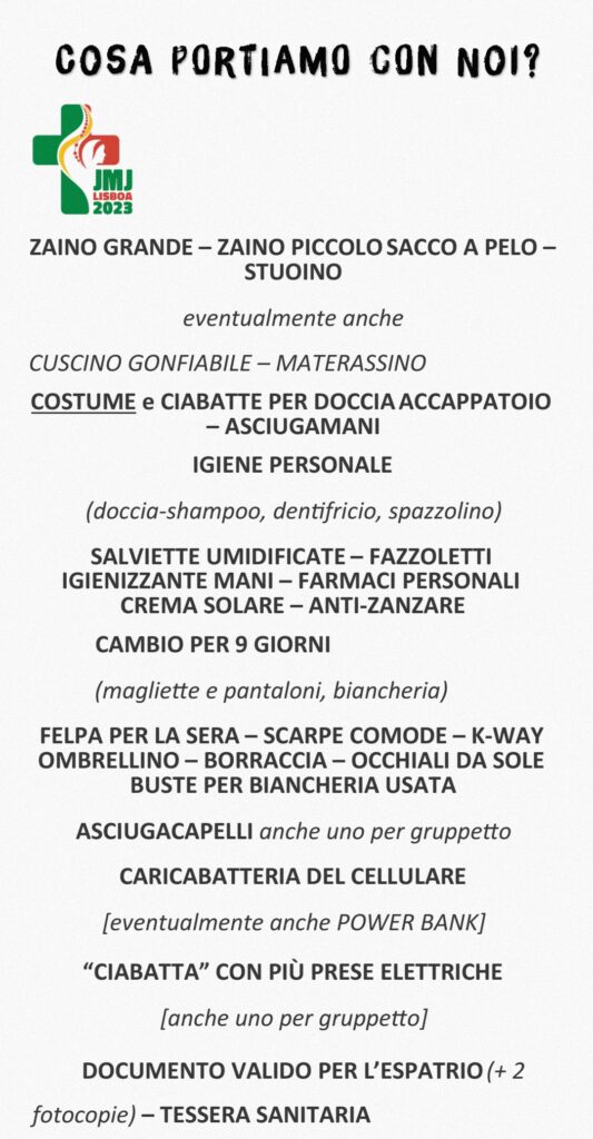 PORTA CON TE, OLTRE AL TUO ZAINO DA ROUTE COME BAGAGLIO GRANDE, ANCHE UNO ZAINETTO CHE POTRA’ SALIRE SULLA NAVE CON TE con il necessario per la notte e metà giornata successiva (Sacco a pelo, cena, colazione, un cambio, sacchetta lavaggio…)
